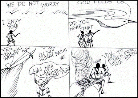 Trust A THOUSAND SPARROWS AND YOU Posted by sowercartoonz on January 20, 2017January 4, 2017 A THOUSAND SPARROWS AND YOU Luke 12:22; “Therefore I tell you do not worry about your life, what you will eat, or about your body, what you will wear.” Do not worry, God will feed and clothe us, but rather trust in him fully. #sowercartoons @sowercartoons Share this: Click to share on X (Opens in new window) X Click to share on Facebook (Opens in new window) Facebook Like Loading... Related